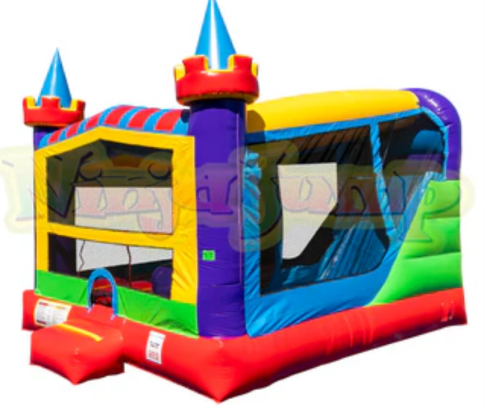 This 4 - N - 1 is jam packed with fun. Offering a generous area of jumping, basketball hoop, climb and slide. This 4 - n - 1 offers more fun per square foot than any other! This attraction is approved for both indoor and outdoor use. High-visibility mesh around all sides allows everyone to view easily.